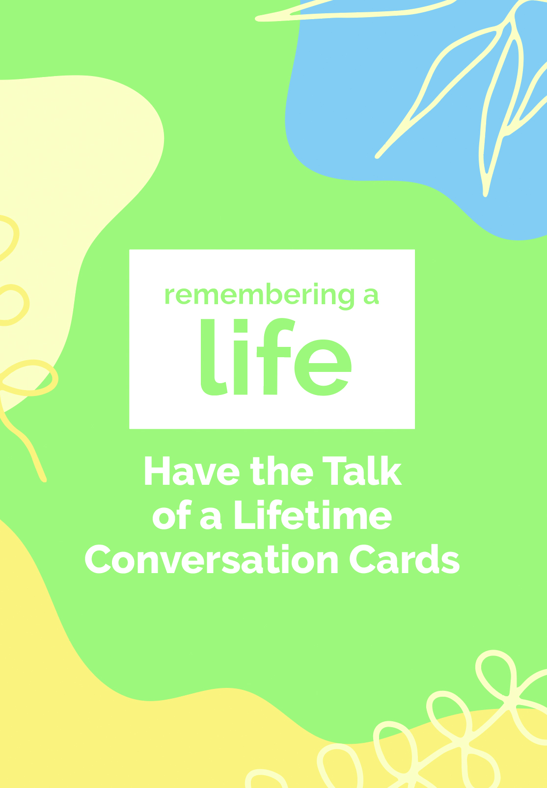 This deck of 52 thought-provoking questions will help get the conversation started and help put family members and friends at ease while talking about a topic that may generate a variety of emotions. Questions cover five key areas.